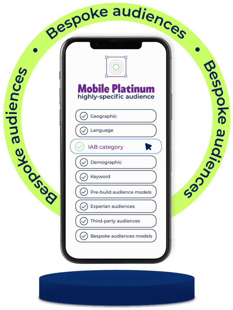 Mobile Platinum is our most advanced product, offering enhanced targeting through Experian data, third-party, and custom audience models. It also allows targeting of users browsing competitor sites, ensuring precise audience reach without being limited by geographic constraints.